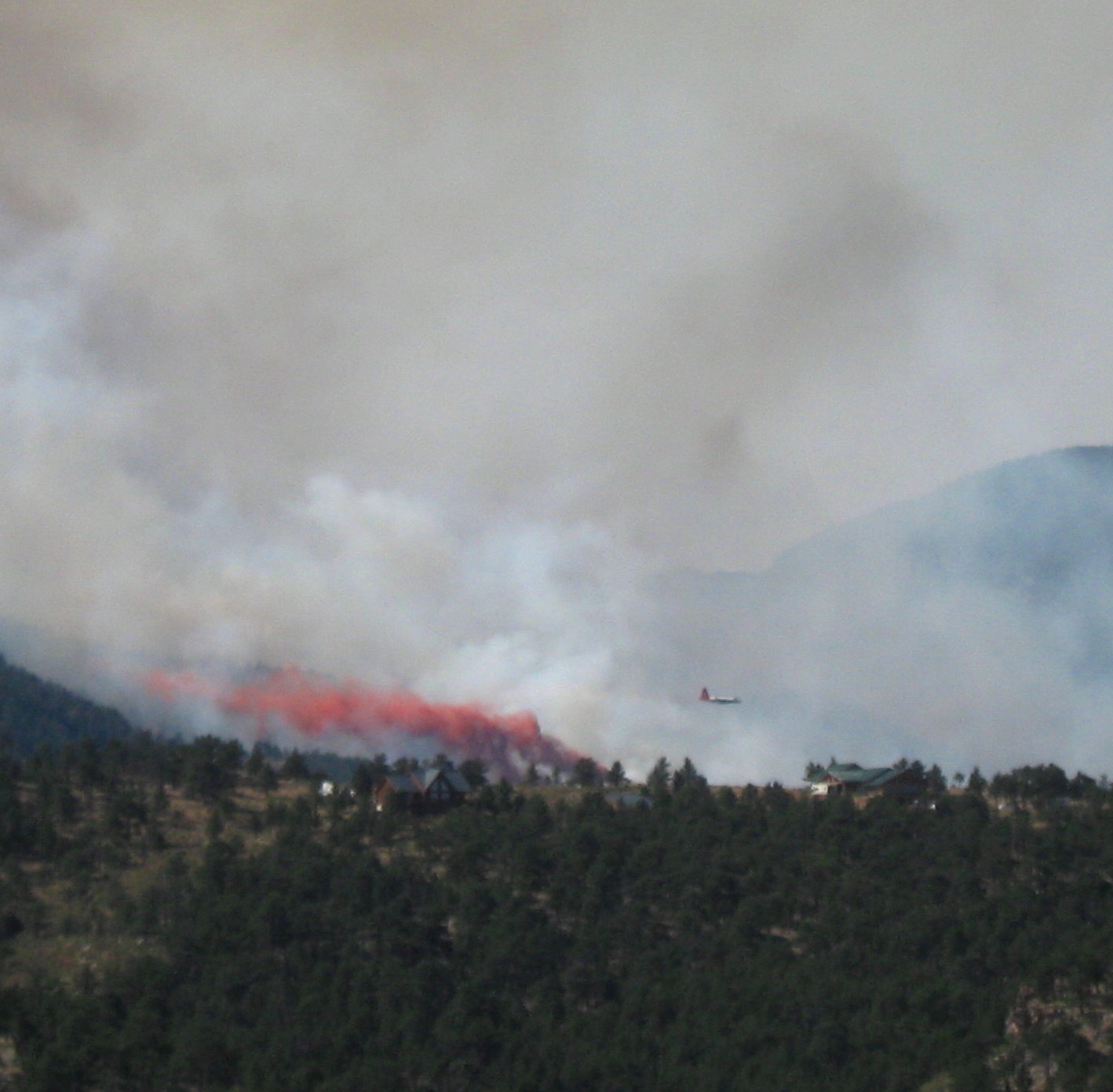 Slurry Drop, Reservoir Road Fire, Loveland, Colorado, 9/12/10. Copyright Gaussling 2010.