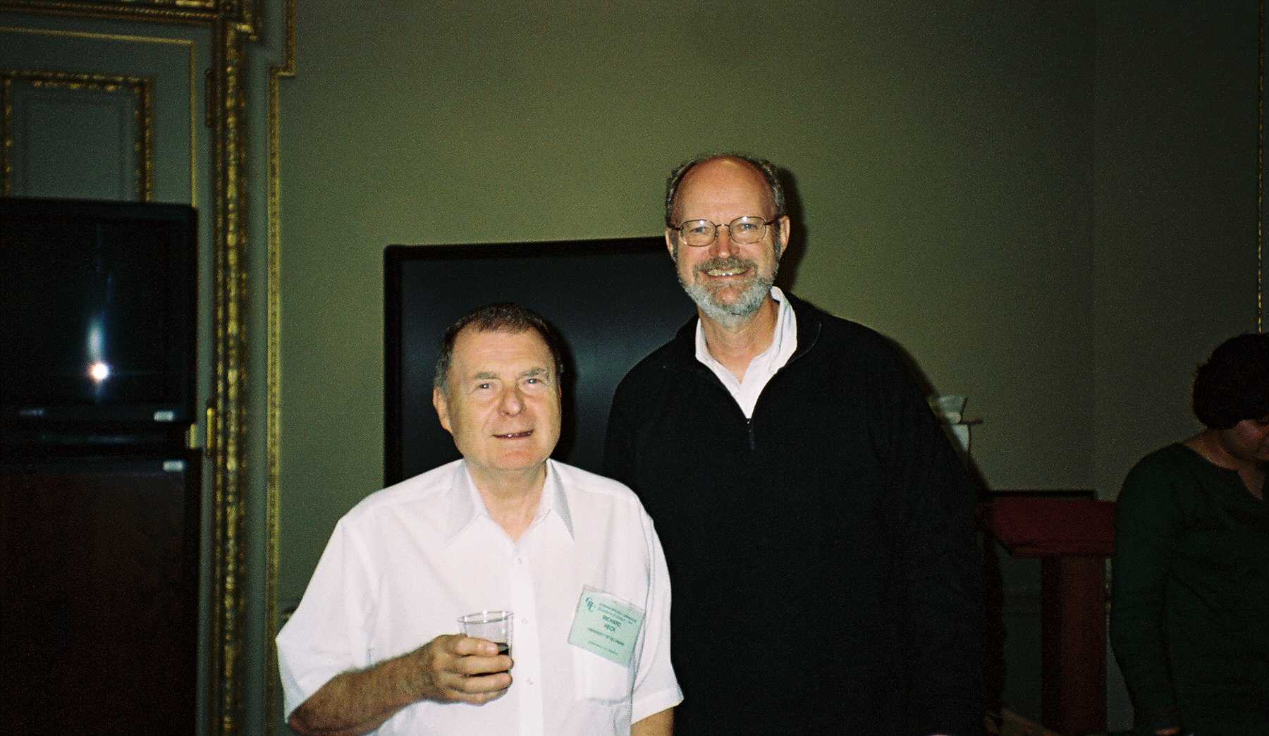 Here is a picture I took of Richard Heck in the spring of 2005 posing with Bob Grubbs before his trip to Sweden. This was taken at the Organometallic Chemistry section of the Gordon Conference at Salve Regina in 2005. It is a great place to spend a few days giving or listening to chemistry talks, though the dorm accommodations are a bit spartan.