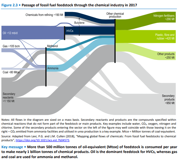 Flow of oil and gas streams to chemical product production. Source: The Future of Petrochemicals, IEA.