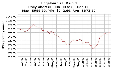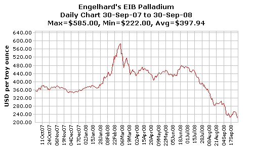 Platinum pricing has fallen considerably as well, from the Feb ’08 high of US$2275/toz to todays opening price of US$780/toz.  While Platinum does have considerable automotive and industrial catalyst application, it is also subject to demand from the global jewelry market, which acts to dampen the price collapse.
