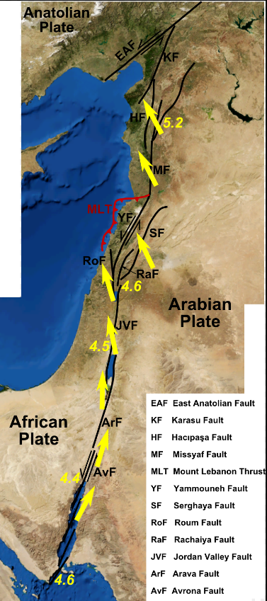 According to USGS, the East Anatolian fault accommodates the westward motion of Turkey towards the Aegean Sea and the Dead Sea Transform accommodates the northward motion of the Arabian plate.
