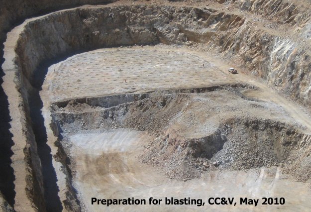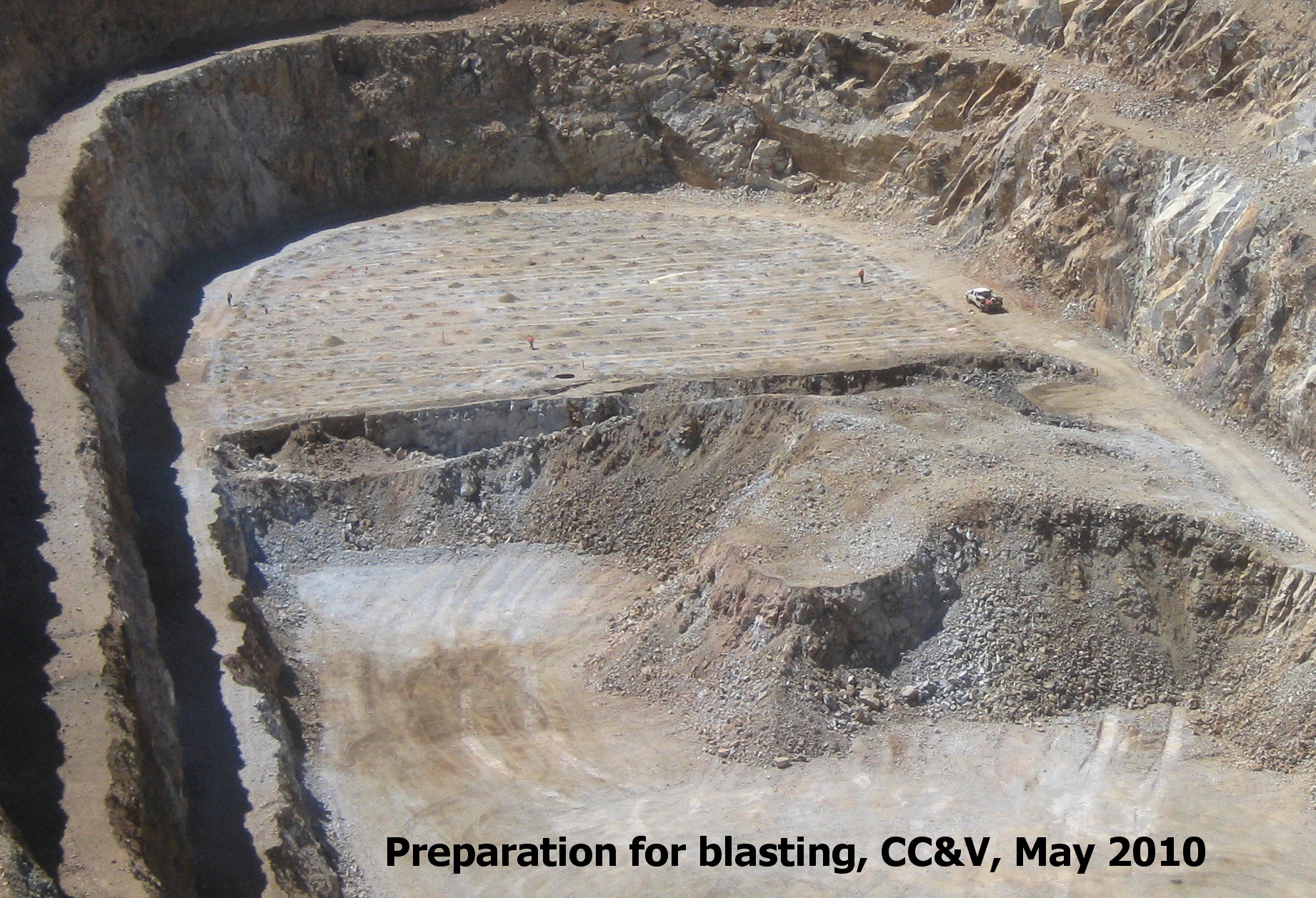 This fault was discovered filled with clay and dips 35 to 45 degrees. It was further exposed by excavation by Caine and another geologist. Again, the approximate boundary of the fault was enhanced with black lines in editing. There was considerable alteration of the rock on the hanging face side of the fault with iron staining associated with hydrothermal alteration.