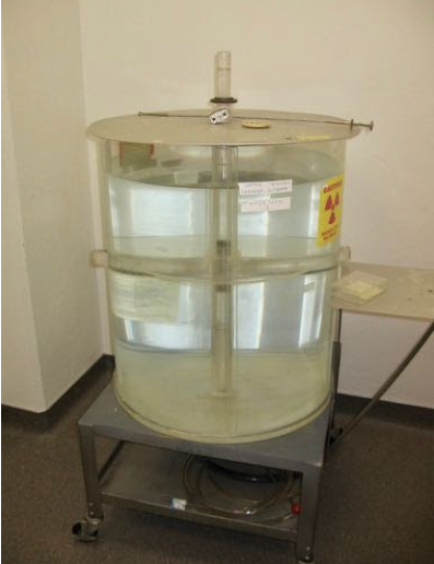 Our neutron howitzer was used for a freshman chemistry lab to measure the half-life of an indium radioisotope. A piece of indium foil would be neutron activated by a timed exposure to a neutron flux and then placed in a radiation counter to collect counts over time from radioactive decay in the indium sample. Indium-115 in the sample would be activated by the absorption of a neutron to form a small amount of Indium-116m1 which emits gammas with a half-life of 54.2 minutes according to this source. This short half-life was ideal for a freshman lab period.