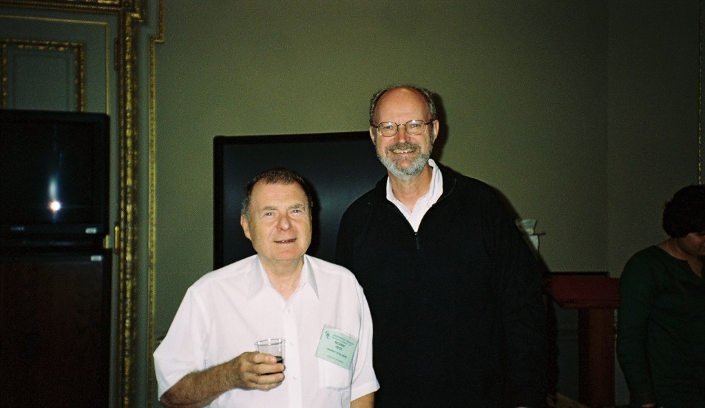 Richard Heck and Bobby Grubbs. Sippin’ wine with the boys. Organometallics Gordon Conference, 2005, Salve Regina University, Newport, RI. Photo credit: Arnold Ziffel.